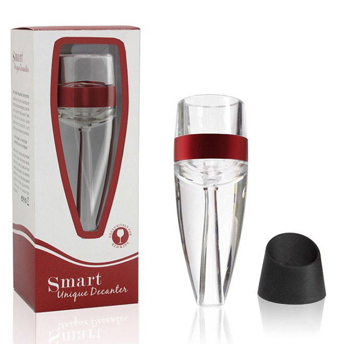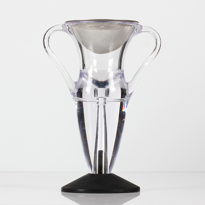 4-piece set includes:- wine aerator, base stand, velvet storage bag and sediment screen