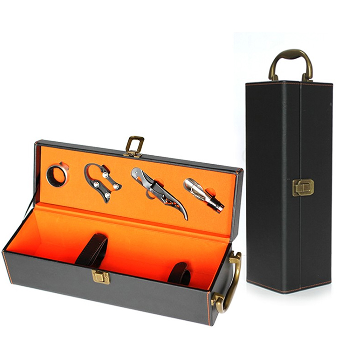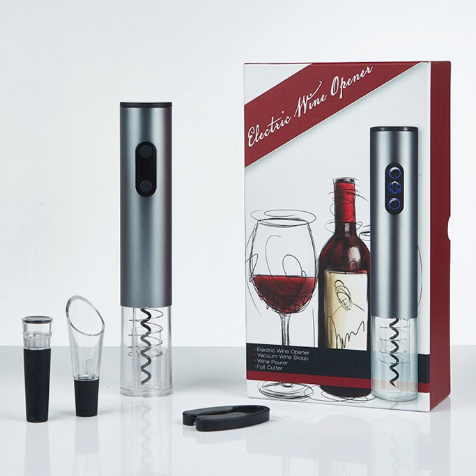 5-piece set includes:- gift box, foil cutter, wine pourer and wine drop stop ring